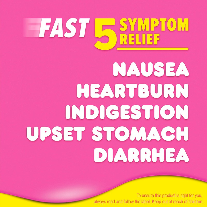 • 5 SYMPTOM Digestive Relief: Nausea, Heartburn, Indigestion, Upset Stomach, Diarrhea.* *To ensure this product is right for you, always read and follow the label. Use as directed. Keep out of the reach of children (Packaging may vary)