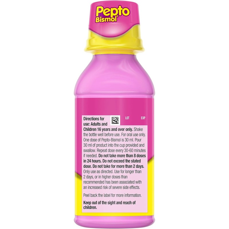 EASY TO USE: Simply take 1 dose (30 mL) every 30-60 minutes as needed, up to 8 doses in 24 hours; the attached dosing cup ensures you can easily get the correct amount of Pepto-Bismol for each dose