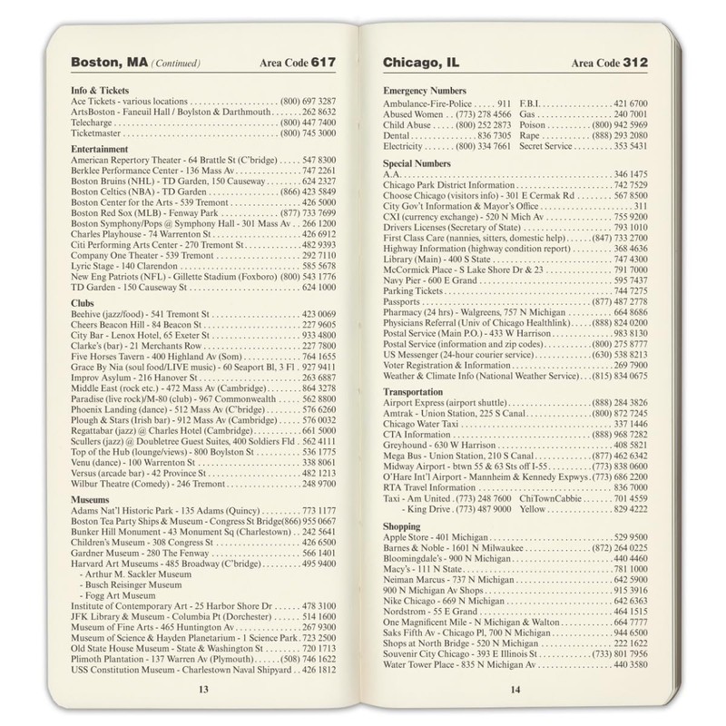 • Handy tools such as an area code map, conversion tables, weekly calendar section and more make navigating and planning simple.
