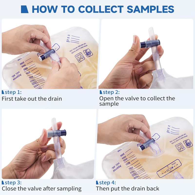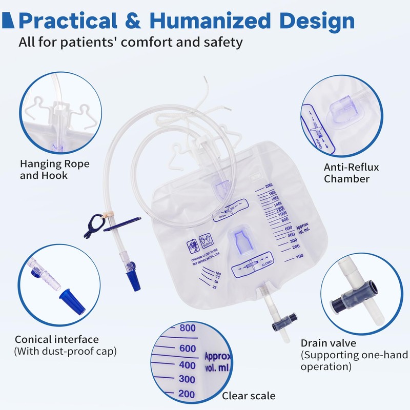 - User-Friendly Design: Features clear measurement marks, a one-hand drain valve, and secure hooks, clips, and ropes for easy attachment to beds or wheelchairs