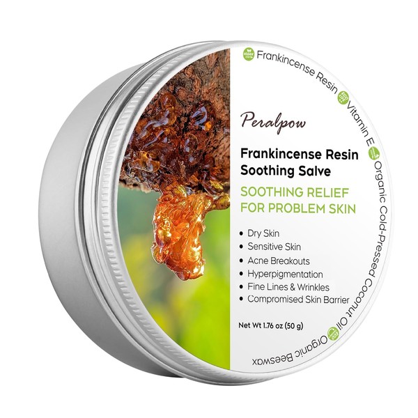 Peralpow Frankincense Resin Soothing Salve - Organic Coconut Oil & Beeswax - Moisturizing Balm for Dry - Sensitive Skin - Vegan Safe - 1.76 oz