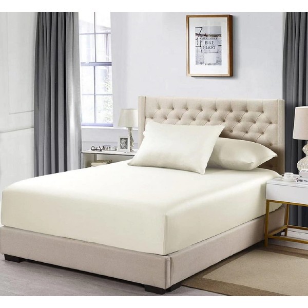 Percale Fitted Sheet, Extra Deep Pocket (22 Inches) Queen Size Fitted Sheet Only, Solid Ivory