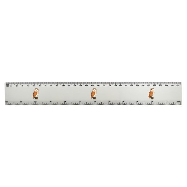'Perched Barn Owl' 30cm (12 Inch) White Plastic Ruler (RL00085630)