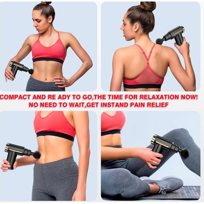 Percussion Massage Gun with 4 Attachments, Handheld Deep Tissue Massager, Black and Gold