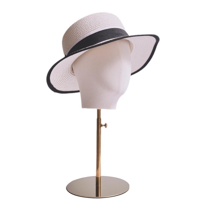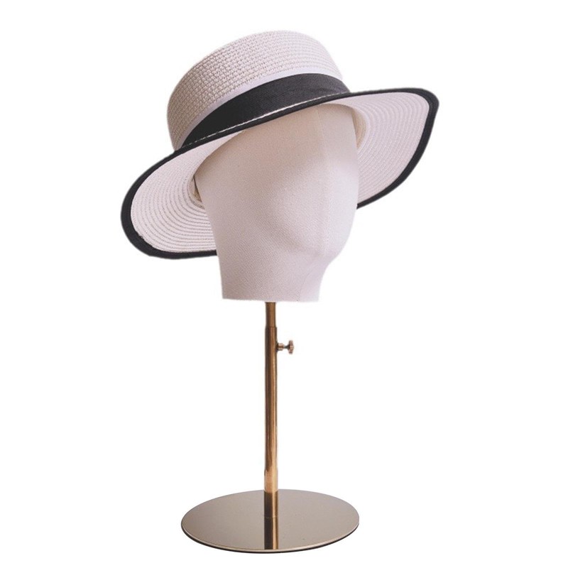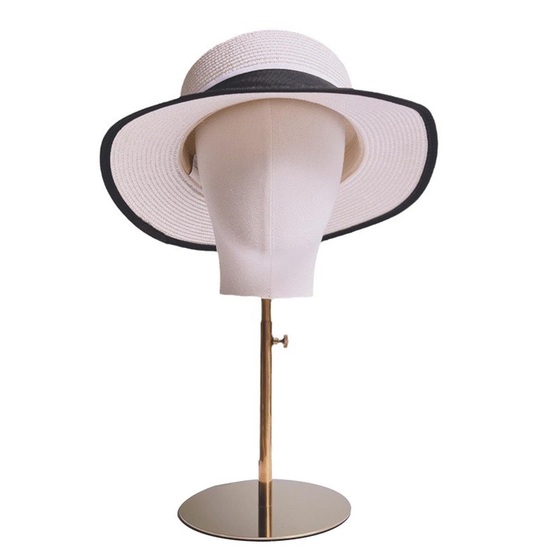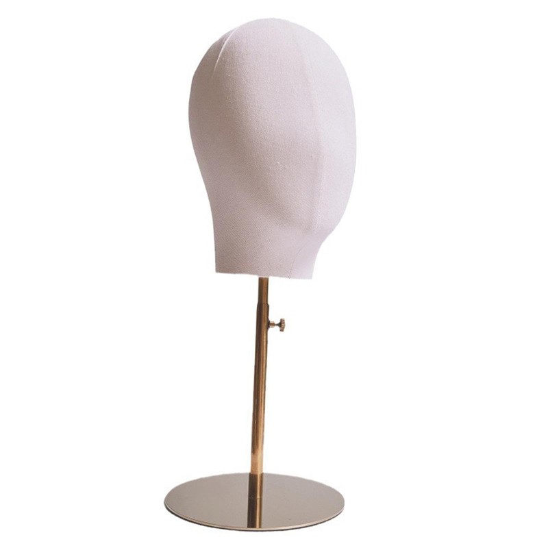 perfeclan Canvas Block Head Hutständer Stoffkopf Freistehender Desktop-Perücken-Präsentationskopf Perücken- und Hutständer für Kappen-Kopfbedeckungen zu Hause, Gold