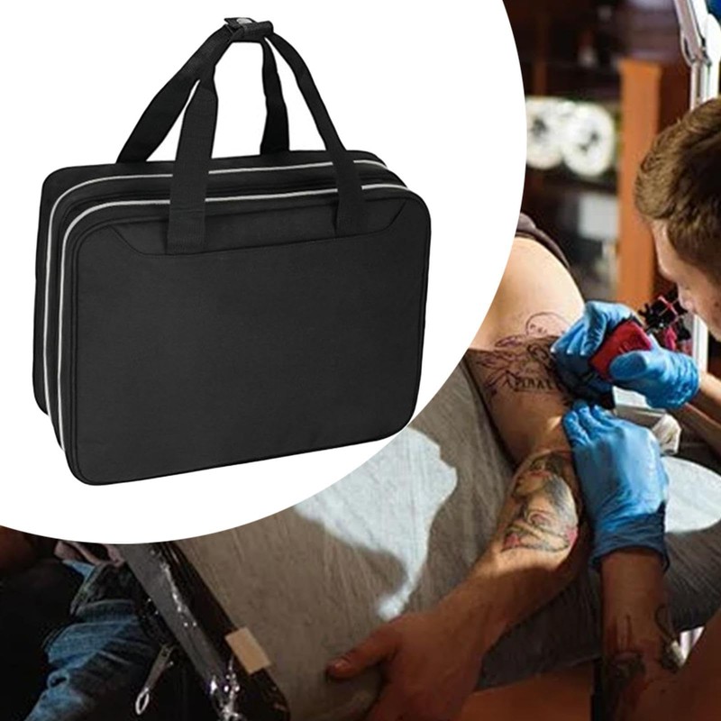- Double-Layer Large Capacity: The bottom layer can store a tattoo printer and tattoo ink, while the top layer can hold rotary or battery-powered machines, cups, gloves, practice skin for tattoos and other accessories