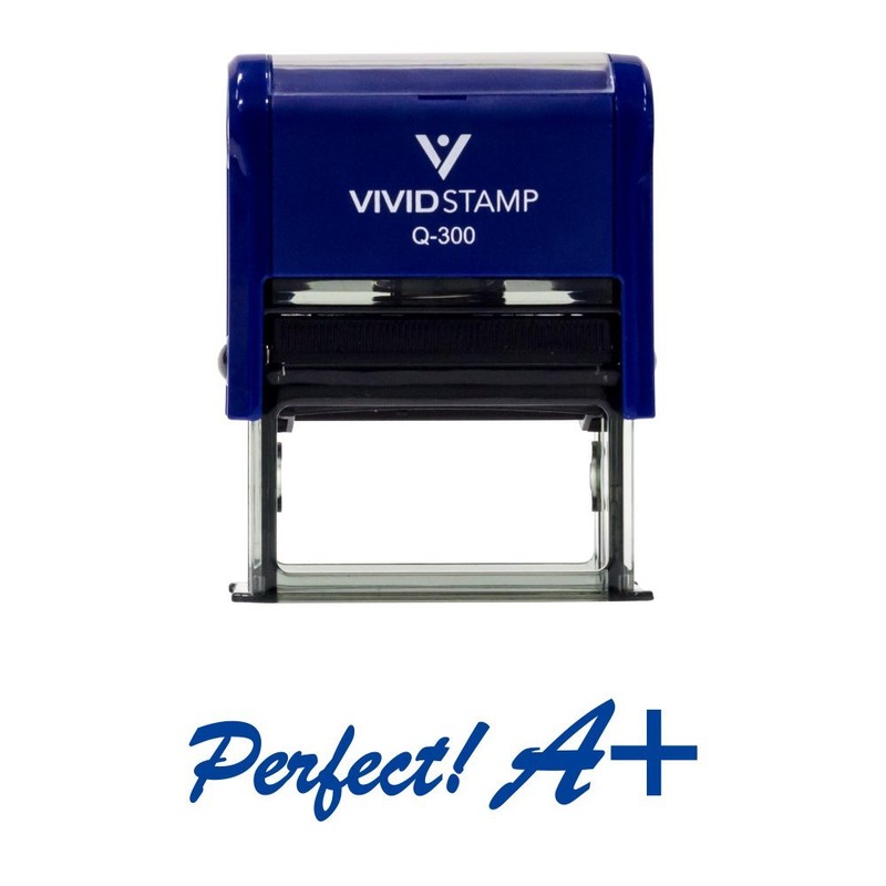 Perfect A+ Teacher Self Inking Rubber Stamp (Blue Ink) - Large
