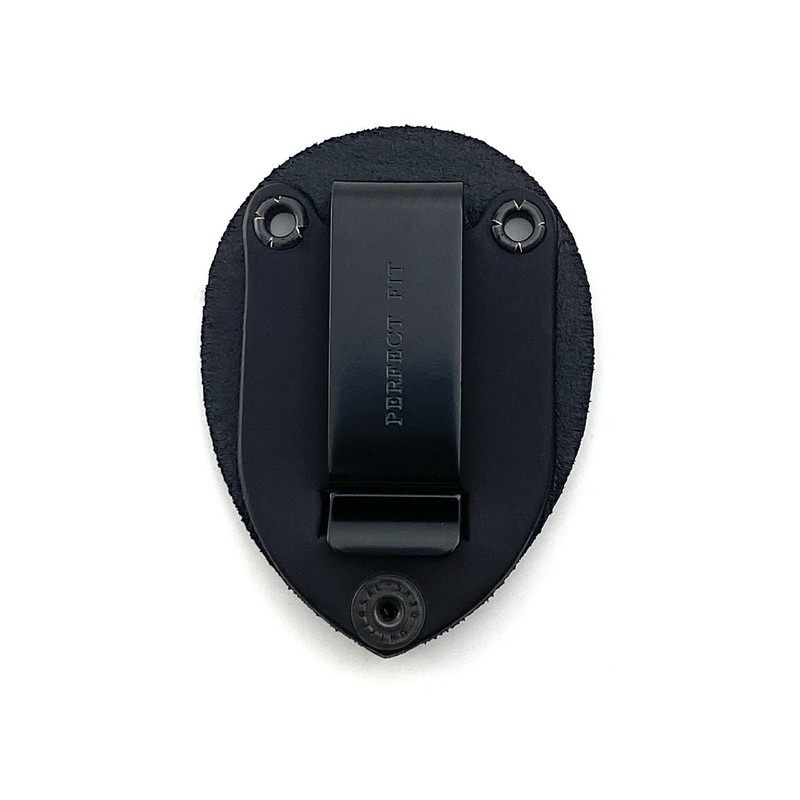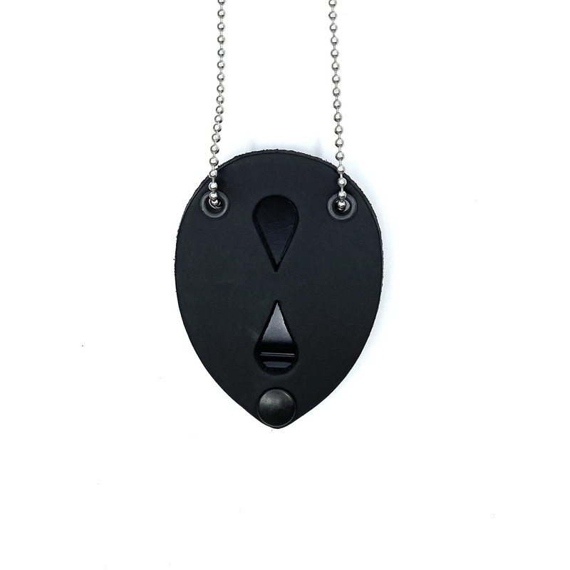 Perfect Fit Universal Leather Teardrop Badge Shield Holder with Metal Belt Clip and Bead Chain Necklace, Snap Closure Model Black