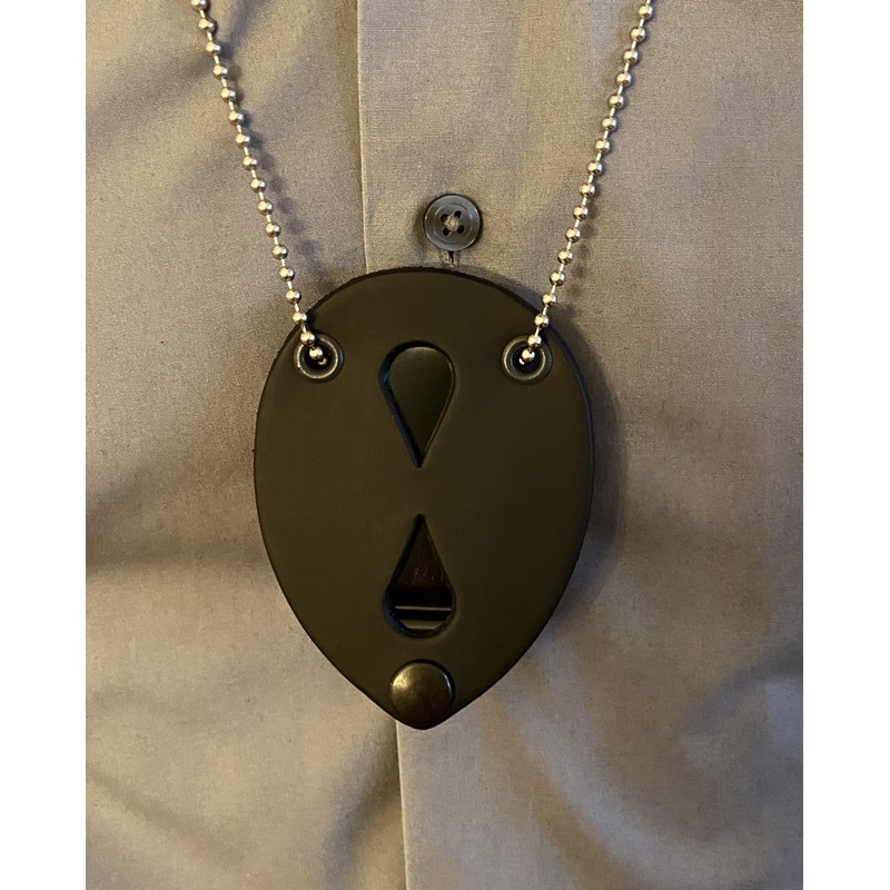 - Economy Thin style Badge holder with Metal Belt Clip and Chain Included for wearing around the neck with snap closure for easy badge mount