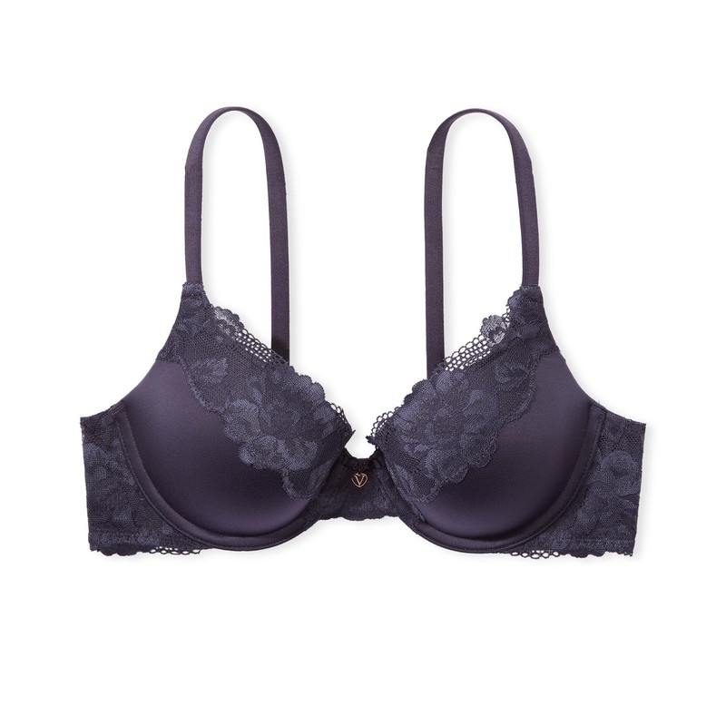 Our most popular bras for everyday and always. Combining a subtle push-up lift with the full-coverage support you love, this style features our new vintage-inspired lace and soft padding that lays up to 20% flatter at the bust for your most natural look and feel.Lift & Lining Uplift with cushioned padding for shape Underwire New Infinity Edge neckline Full coverageStraps & Hooks Fully adjustable straps Back hook-and-eye closuresDetails & Fabric Supersoft, double-lined sides for the smoothest shape Bow and charm details at front Partially made from recycled materials Hand wash Imported