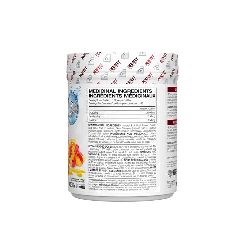 PERFECT Sports BCAA Hyper Clear, 5g Vegan BCAA's - Intense Peach Rings Candy (45 Servings, 310g)