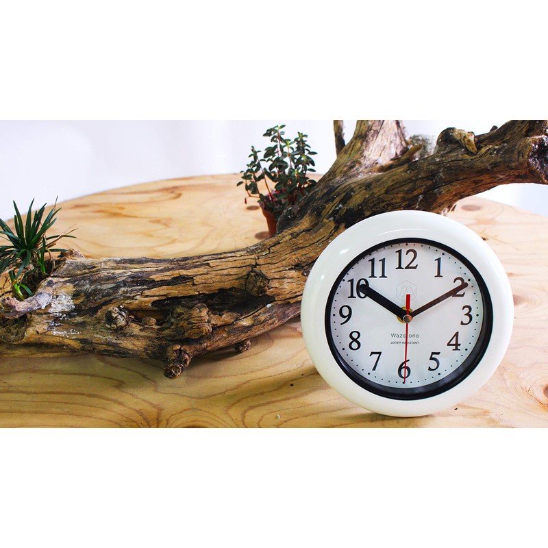 Perfect White Shell Water Resistant Clock, Quartz Movement, Simple Design, 6.5" in Diameter, ABS Glass Front, Flexible Options to Hang or to Stand. Withstand Water Vapor and Moisture.