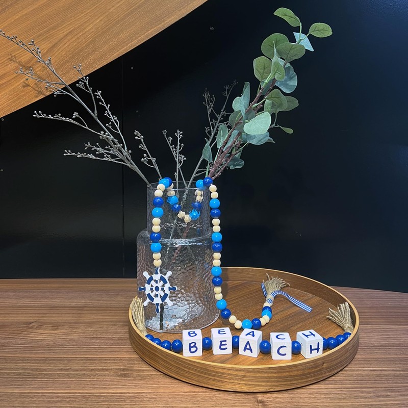 - Exquisite Craftsmanship: The decorative garland tray sign is meticulously crafted with polished wooden beads made of sustainable wood material that’s not easy to break or deform. Polished with care, the nautical beachy beaded garland decor is soft to the touch and splinter-free.