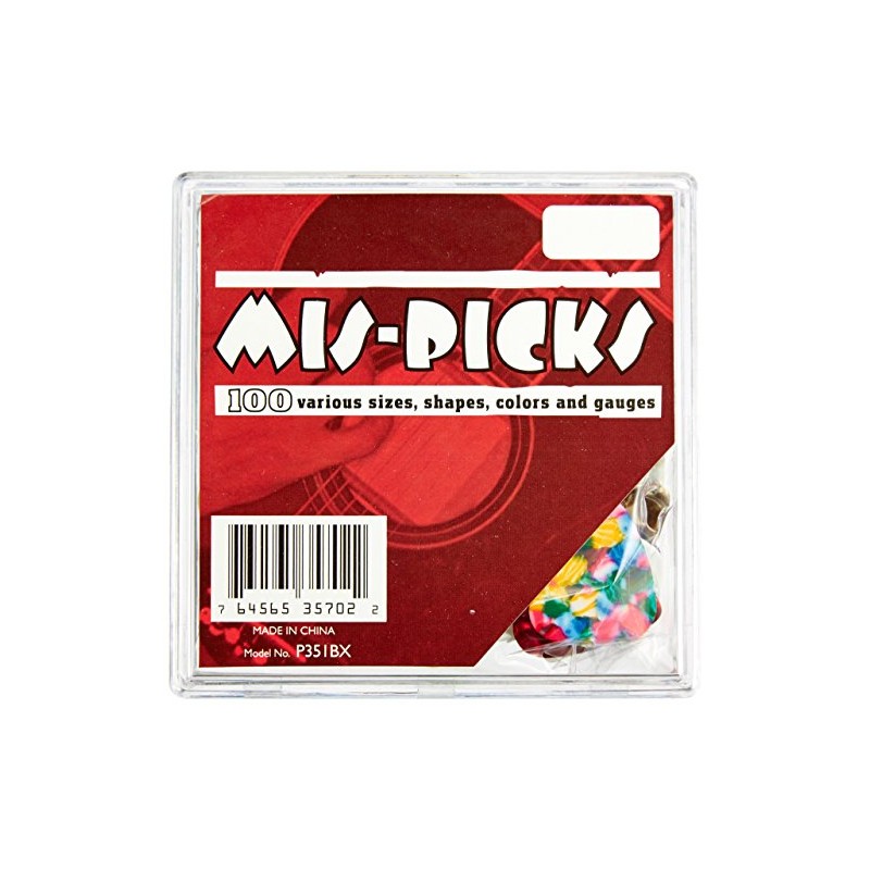 - Assorted box of 100 picks in miscellaneous shapes, sizes and gauges
