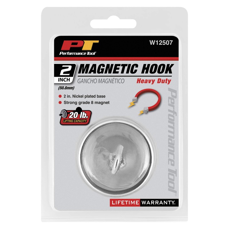 Performance Tool W12507 2-Inch Magnetic Hook for Secure Storage and Organization of Metal Tools and Objects