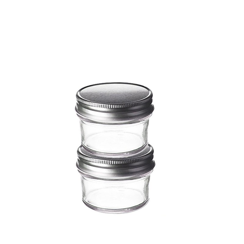 - 2 Pieces, 4 oz Mason Glass Jars with Silver Screw Lids, Tapered Glass Design