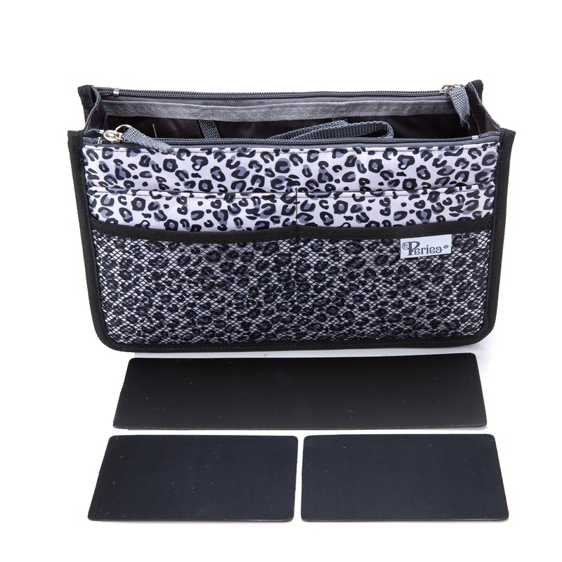 Periea 'Chelsy' Premium Handbag Organizer Insert: Structured Travel Pouch for Tote Bag, Purse Insert for Efficient Bag Organization - Small, Leopard Silver