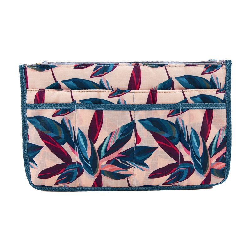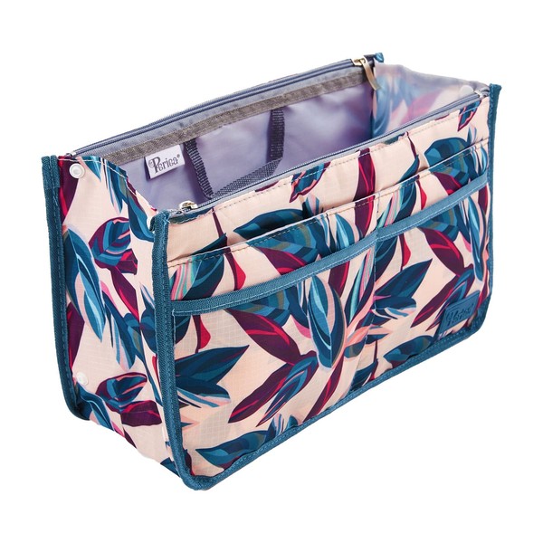 Periea Signature Purse Organizer Insert with Handles & 13 Pockets - 3 Sizes (Peach Leaves, Large)