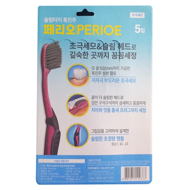 Perio Slim Touch Black Pearl Ultrafine Wool 5 Pieces, 3 Sets / 페리오 슬림터치 흑진주 초극세모 5개입, 3세트