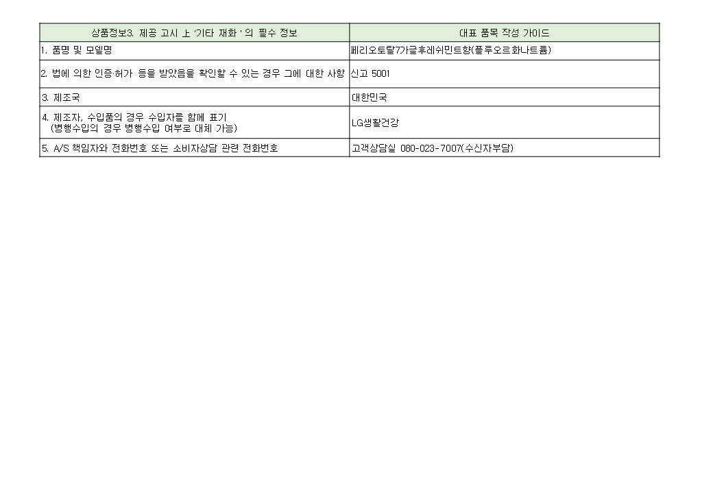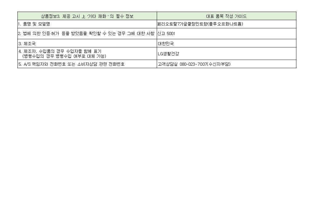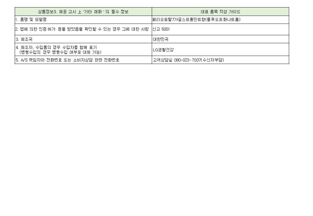 - A/S manager and phone number or consumer consultation phone number: Product inquiry 080-023-7007