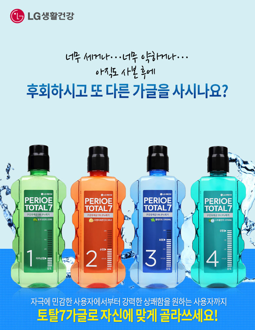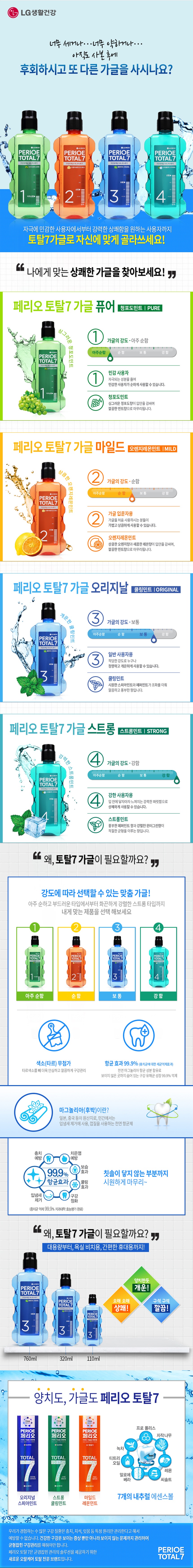 Perio Total 7 Gargle 760ml x 3 (Choose 1 of Fresh/Cooling/Strong), Strong / 페리오 토탈7 가글 760ml x 3개 (후레쉬/쿨링/스트롱 중 택1), 스트롱