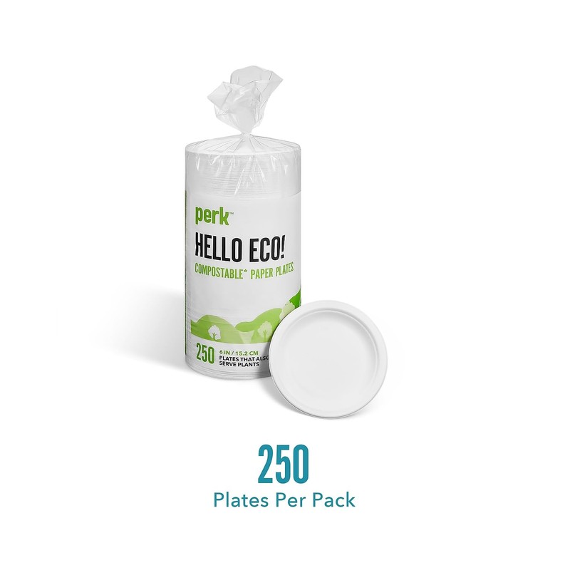 Perk Compostable Paper Plates, 6-inch, White, 250/Pack (PK61286)