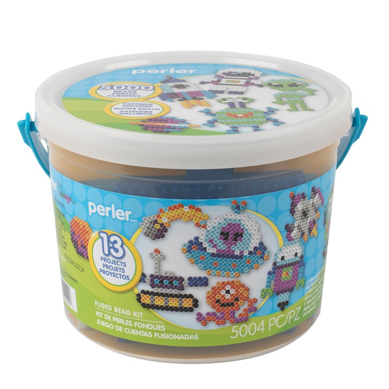 Perler 80-42994 Out of This World Fused Bead Activity Kit Bucket with Patterns and Pegboards, Multicolor, 5004 Pieces
