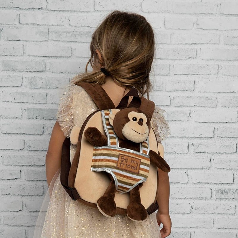 PERLETTI Cuddly Toy Backpack with Plush Removable Soft for Toddlers - Children's Backpack Plush Toy for Nurseries Baby Children 3 4 5 Years - Plush Toy Children's Bag - 22 x 25 x 3 cm, Monkey, Kids