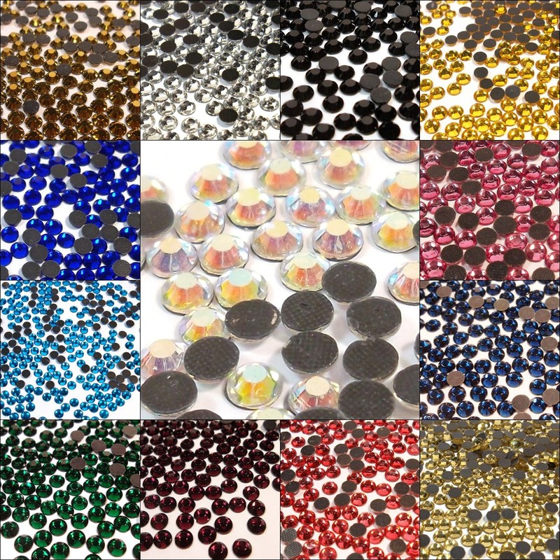 - Colour: Olivine Green, Gold, Light Green, Gold AB, Sapphire Blue, Amethyst, Orange, Pink Pink, Fuchsia, Green Peridot, Blue Aquamarine, Crystal AB, Crystal, Blue Montana, Royal Blue, Zircon Green, Gold Metallic, Silver Metallic, Black Jet, Pink, Red Siam.