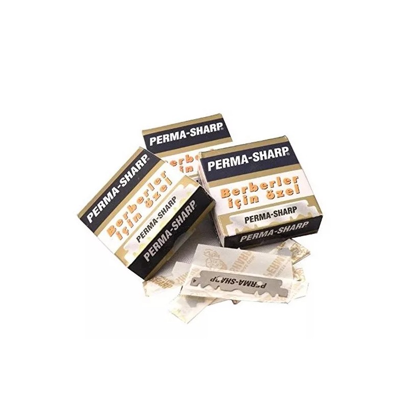 These razor blades are designed for a perfect fit every time - they ensure that the exact and precise blade exposure is achieved when these blades are used in straight edge barber razors or "shavette" type razors. These stainless steel blades are extremely sharp and durable. They are PTFE (a.k.a. Teflon) coated to ensure a smooth shave and a long-lasting blade. (Do not wipe these blades dry after use as doing so will remove the PTFE coating.) The Perma-Sharp Half Blades have quickly become a favorite of our Barbershops! You will wonder why you never used them before, especially if you have been splitting double edge blades. Each box comes with 100 individually wrapped Perma-Sharp 1/2 blades. These are universally renowned for being long lasting, exceptionally smooth and very sharp. If you use a straight edge razor that accepts half a double edge blade, this professional product is for you. There is no finer blade manufactured for straight edge razors/shavers.100 individually-wrapped half bladesPTFE (a.k.a. Teflon) coatedExtremely sharp!Provide an exceptionally smooth shave