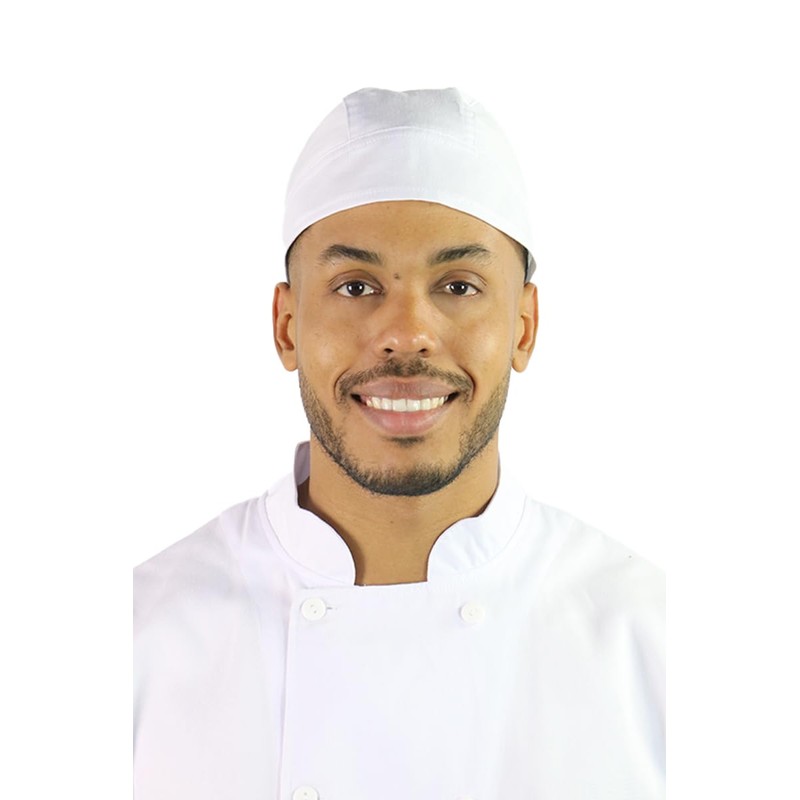 Tie-able beanie that keeps hair and heat under control inside the kitchen, all this without losing style. Composition: 65% Polyester - 35% Cotton Colors: White, Black, Red Features: One size fits all Unisex Ties in the back