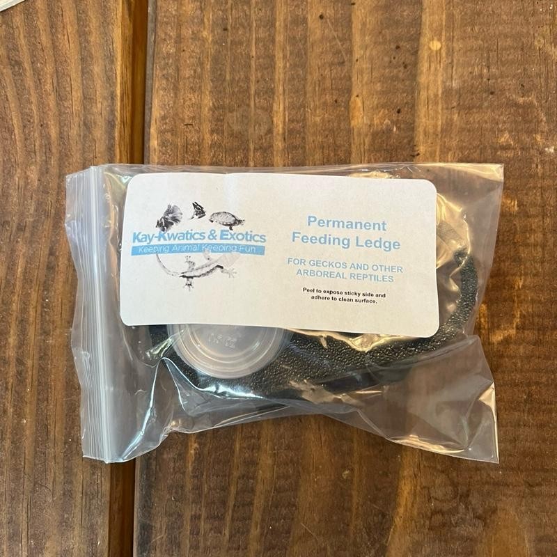 Small And Sleak Permanent Feeding Ledge With Starter Disposable Cups for geckos and other arboreal animals Included: 1 feeding ledge 5 Disposable Cups Directions: Peel backing to expose sticky side and adhere to clean surface. Care: Hand wash only with warm water, as needed. Material: 3D Printed With PETG Plastic