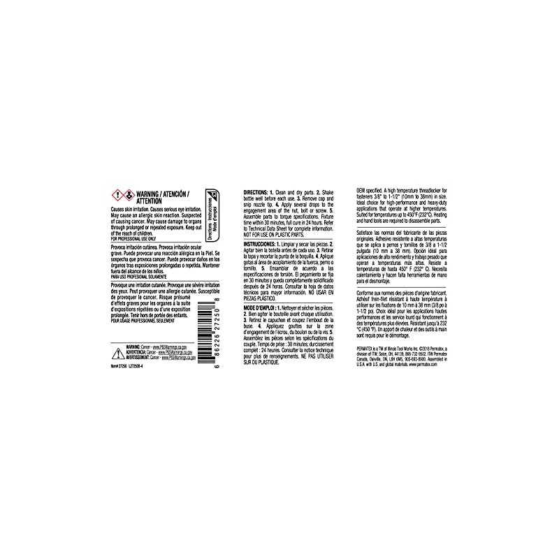 Permatex 27250 Red High Temperature 272 Threadlocker, 50mL