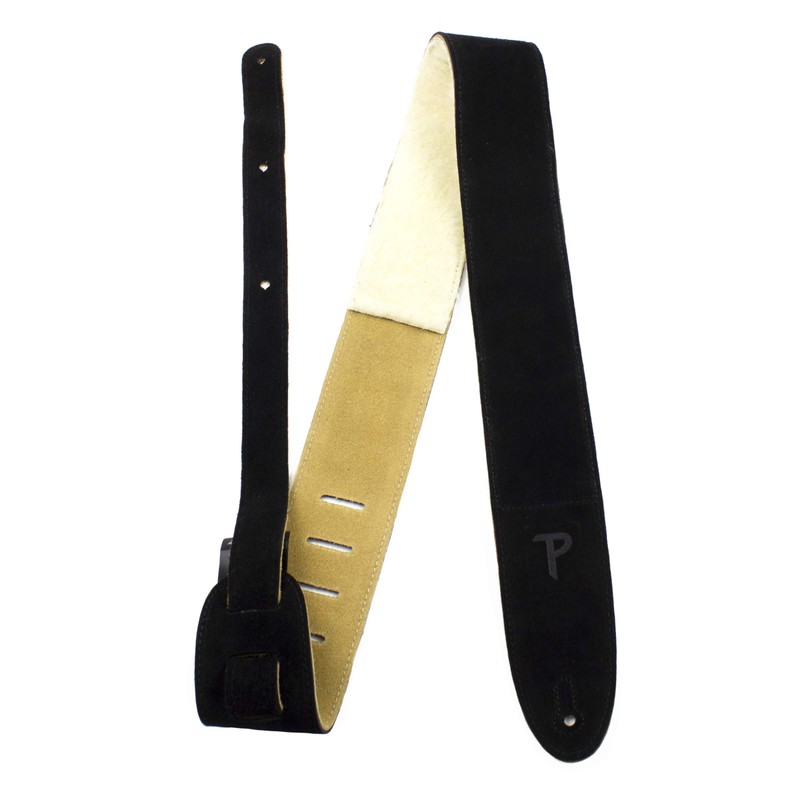 Perri’s Leathers Ltd Guitar Strap, 2.5” Wide Soft Suede, Super Soft Sheepskin Fur Pad, Adjustable Length, (DL325S-202) Black, Made in Canada