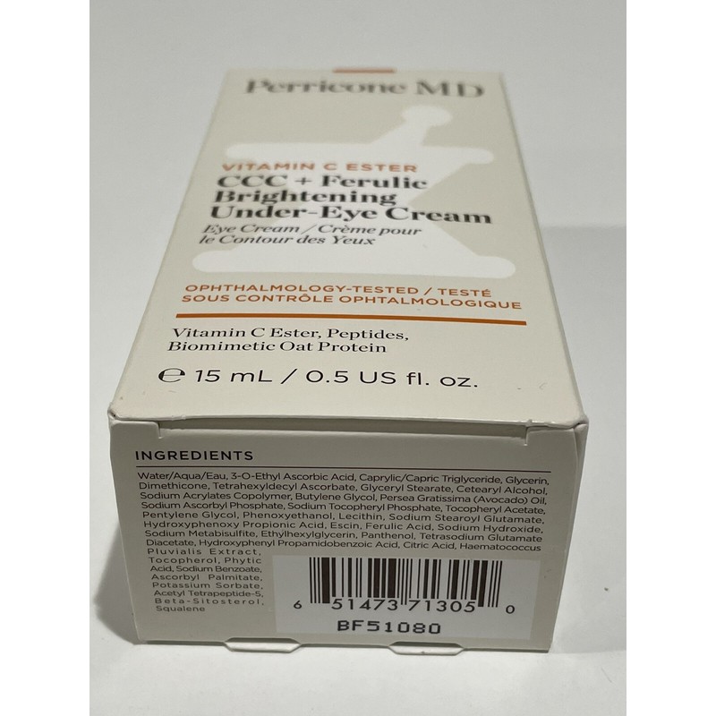 PERRICONE MD Vitamin C Ester CCC+ Ferulic Brightening Under-Eye Cream 0.5 Oz~NIB