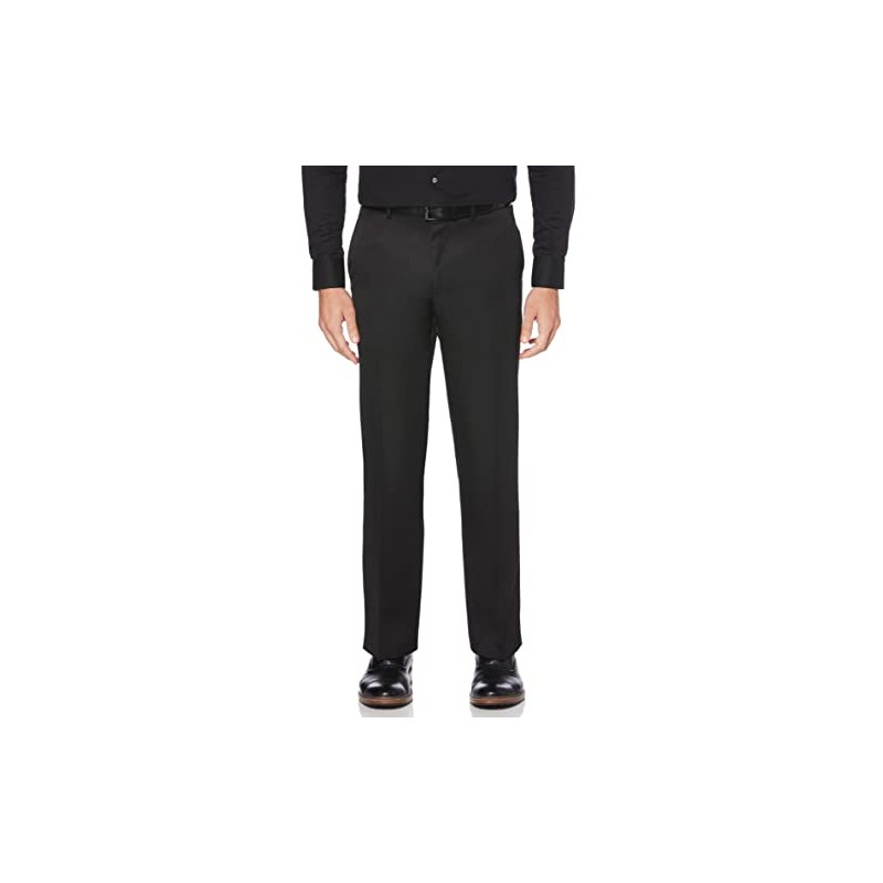 Perry Ellis Portfolio Men's Performance Dress Pant, Modern Fit, Non-Iron, Flat Front Stretch (Waist Size 30 - 42), Black, 42W x 30L