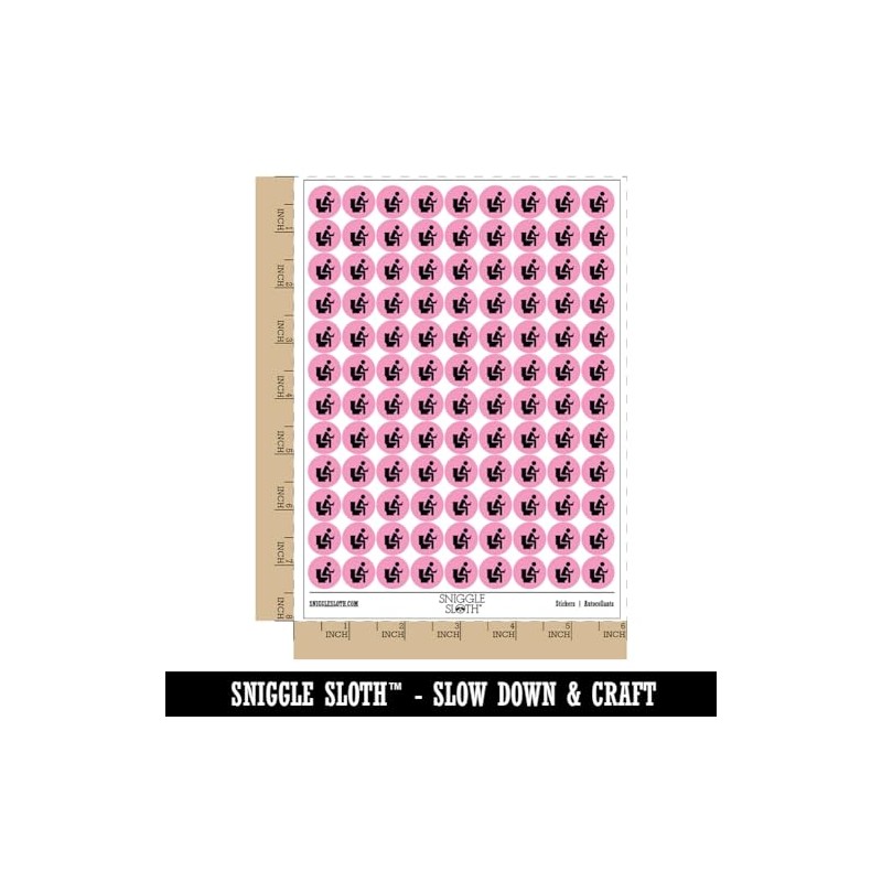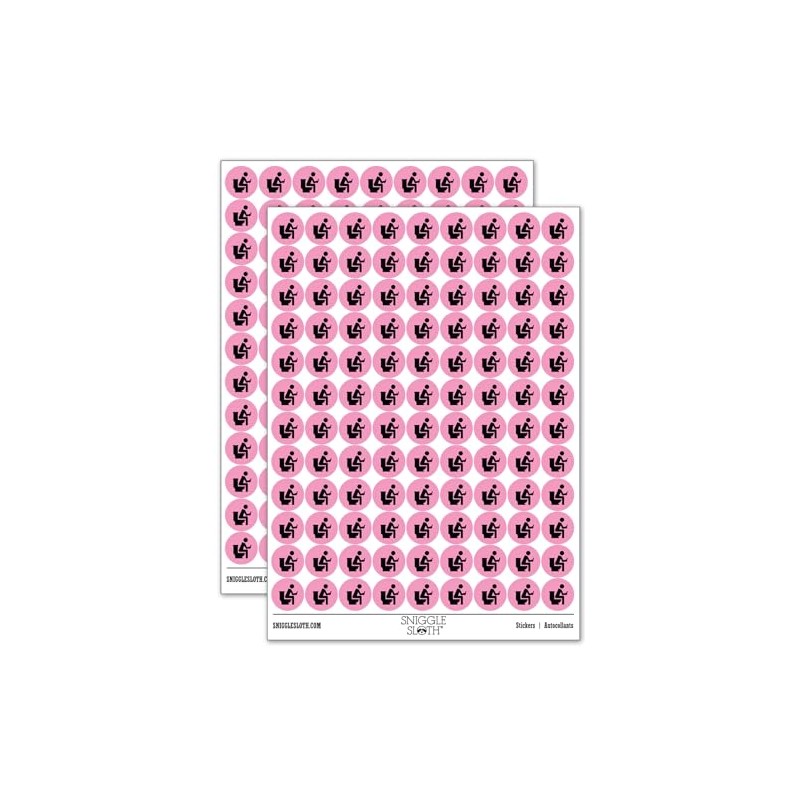 Person Sitting on Toilet with Phone Restroom Pooping 200+ Round Stickers - Matte Finish - 0.50" Size - Light Pink