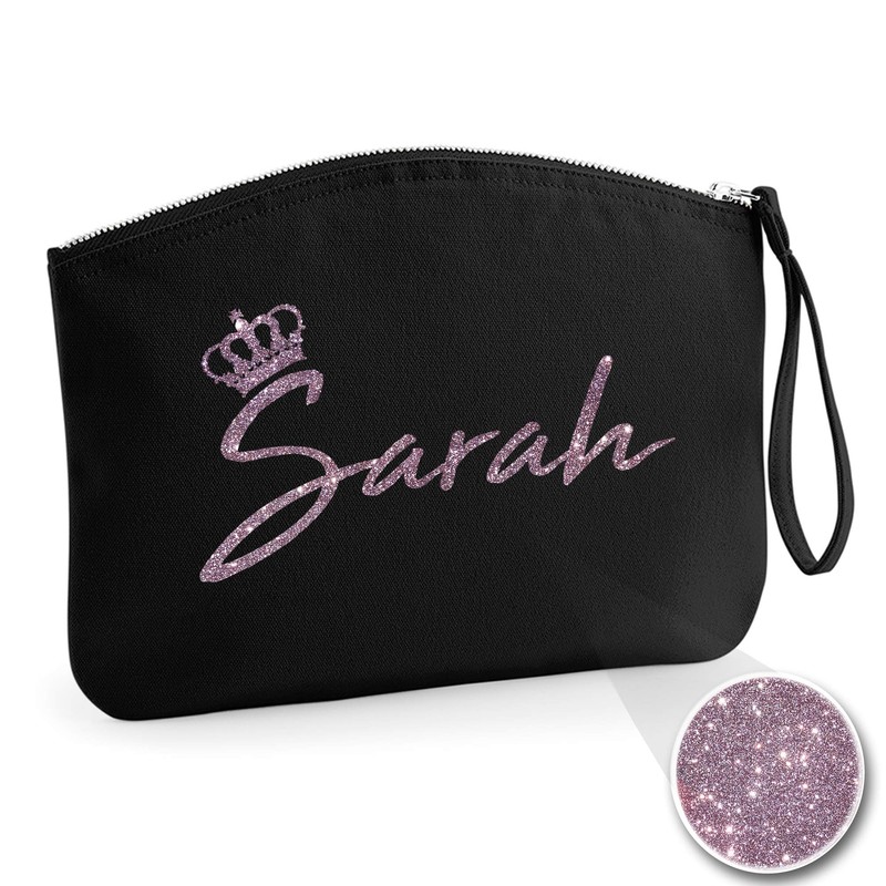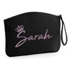 Personalised Make Up Multi Purpose Accessories Wristlet Bag - Black Colour - L (28 x 22 cm) - Rose Gold Glitter Queens Crown