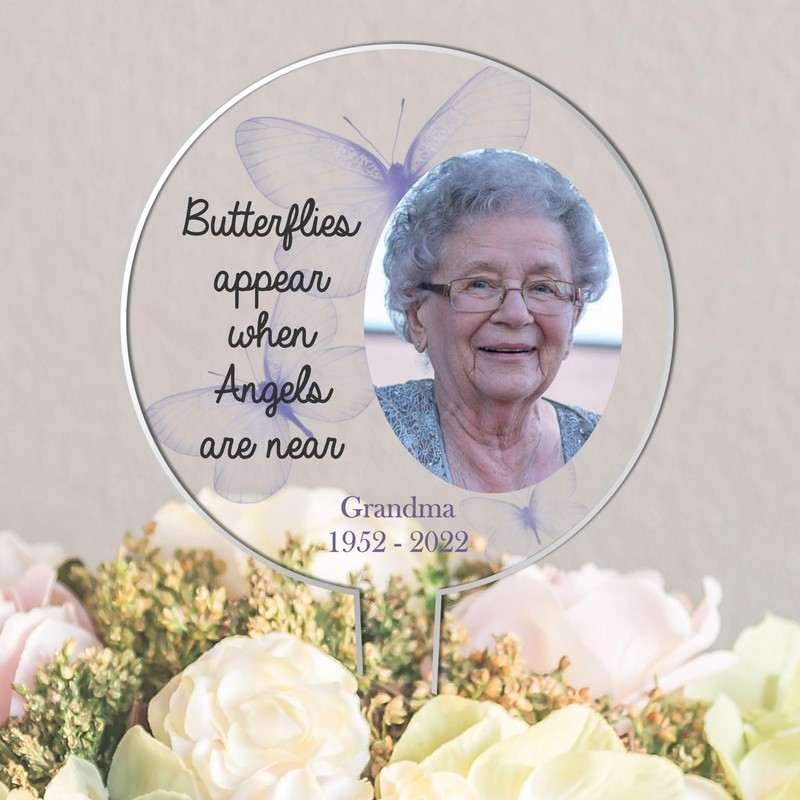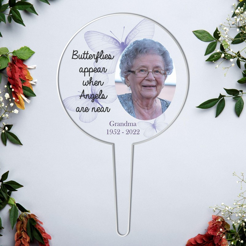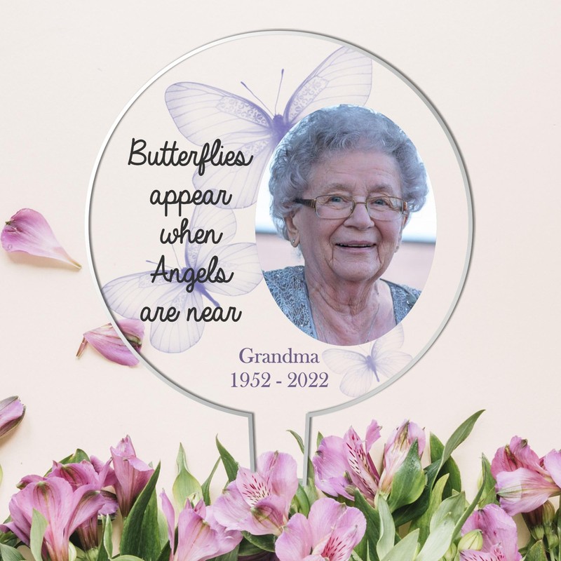 Personalised Memorial Acrylic Grave Stakes - Custom Plaque for Loved Ones Heartwarming Memorial Tribute for Ground Placement (Lilac Butterflies)