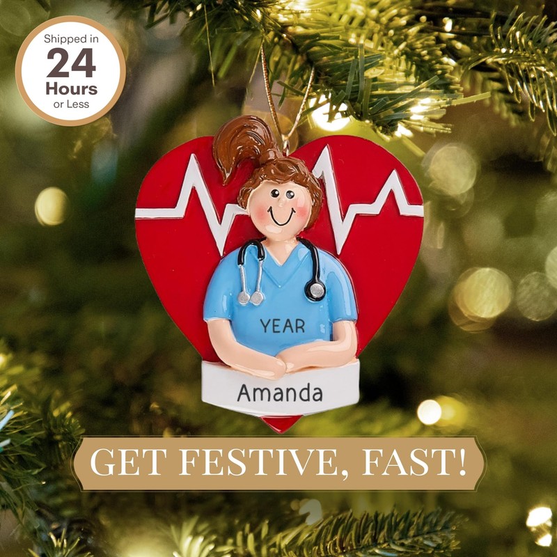 Personalised Nurse Ornament 2025 โ Fast & Free 24h Customisation โ Healthcare Christmas Ornament for Tree โ Custom Gift Wrapped RN in Scrubs Keepsake for Medical Professionals