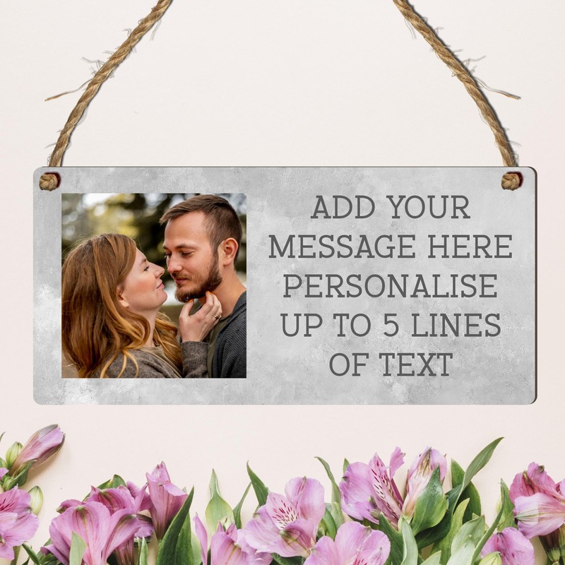 Personalised Photo & Message Customisable Plaque – Add Up to 5 Lines of Text Perfect for Birthdays, Anniversaries, Memorials (Grey, Mdf Wood Indoor Use Only)