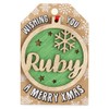 Personalised Wooden Ruby Name Green Hanging Christmas Tree Bauble Decoration