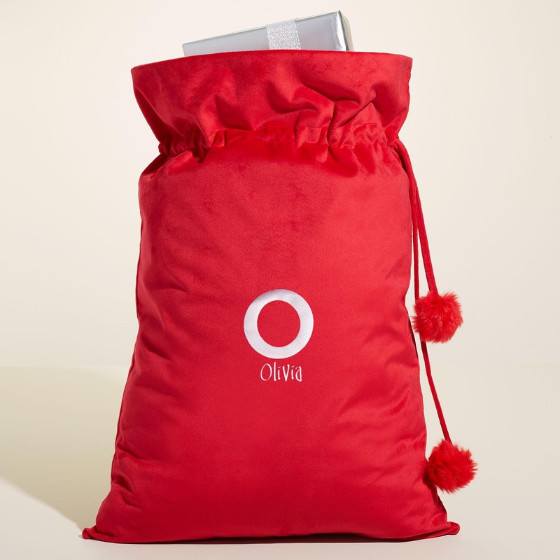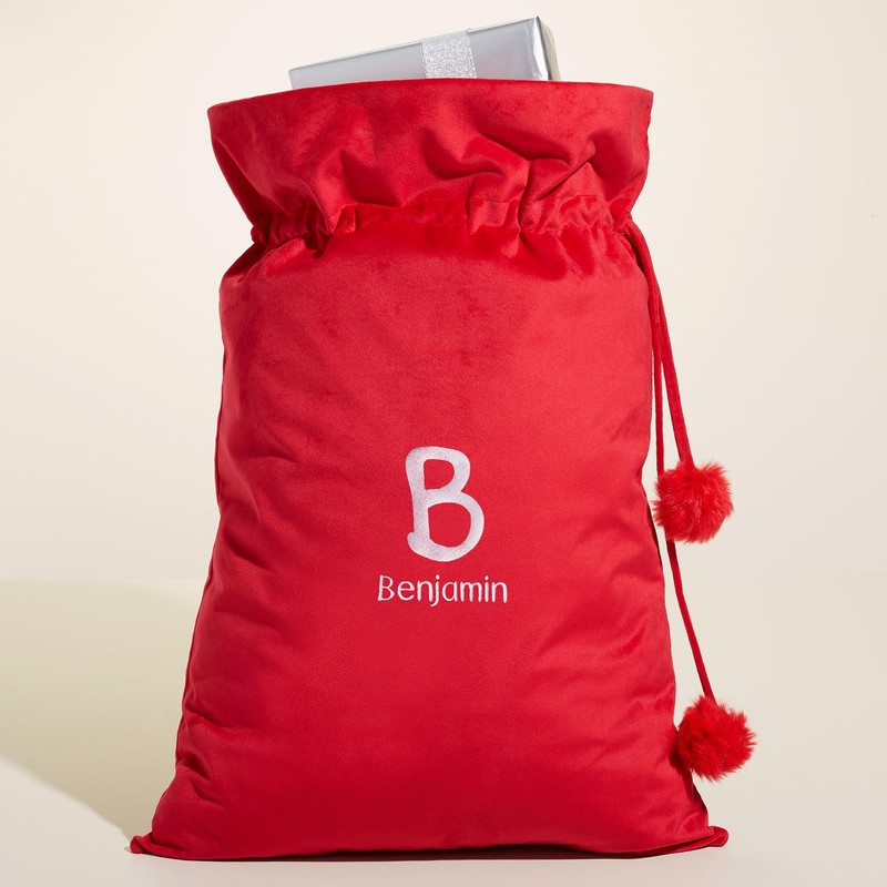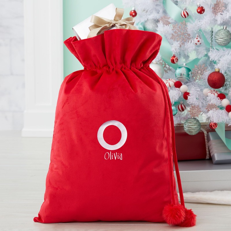 Personalization Universe Initial & Name Embroidered Red Santa Sack