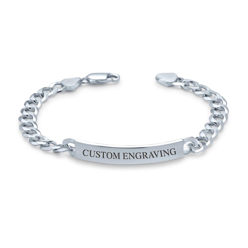 Personalize Bar Name Plated identification ID Bracelet For Men 6 MM Diamond Cut Miami Cuban Curb Link Chain Link 200 Gauge .925 Sterling Silver 9 Inch Customizable