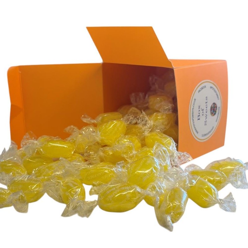 Sharp and sweet lemon flavour hard boiled sugar free sweets with a fizzy sherbet centre. Made with sweeteners. Excessive consumption may produce laxative effects. Not suitable for children under 3 years of age. Contains naturally occurring sugars Ingredients Sweeteners: Isomalt, Sucralose, Vegetable Fat (Palm Oil), Citric Acid; Sodium Bicarbonate, Flavouring, Colour: Beta Carotene. Allergen Information Sugar Free Nutritional Values Typical Values per 100g Energy 1657kj 390kcal Fat 1.0g of which saturates 0.9g Carbohydrates 95.0g of which sugars 0.1g Polols 66.9g Protein 0.3g Salt 0.4g Box Size 21 x 10 x 10cm Weight 300g
