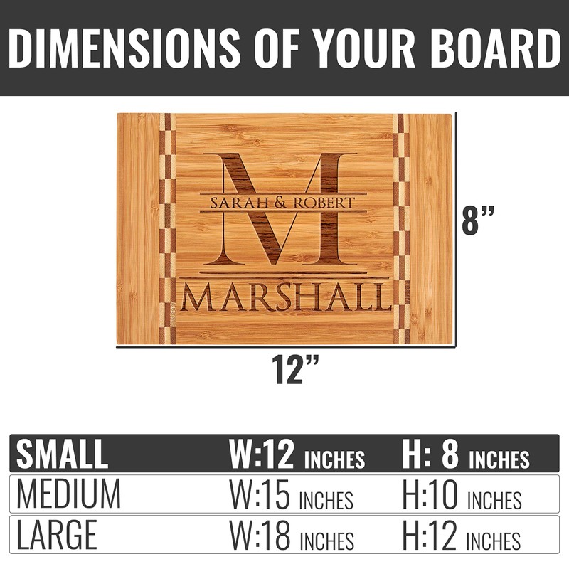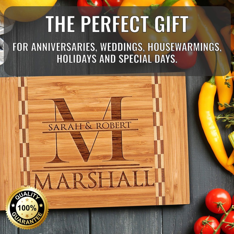 - PERFECT CHOICE - Need a custom cutting board? Choose your design and fill in the lines with names and date you want to add on the board. FREE Laser Engraving. We specialized in cutting boards for wedding gifts for couples, housewarming gifts, corporate gifts, boss gifts, Christmas gift, with laser engraving options and messages.