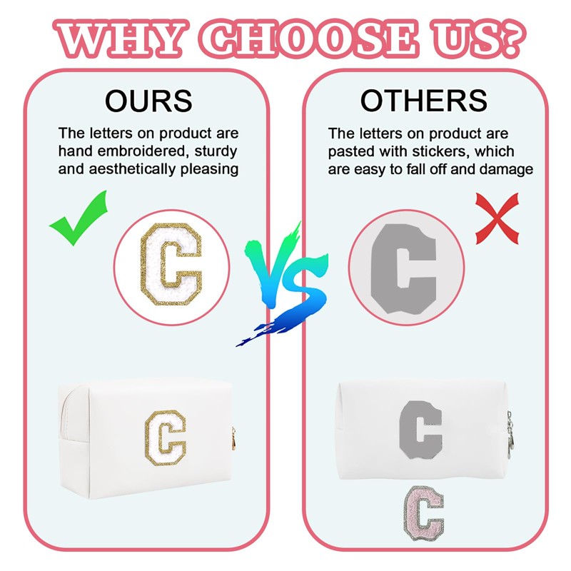 - 【Ideal Gift】The different letter patch make each makeup bag unique and suitable for different scenes or festivals. Ideal gift for birthday, thanksgiving, Christmas, New Year, graduation day, teacher appreciation week, etc. It is also the perfect gift for friends, girlfriends, bridesmaids, family and colleagues.