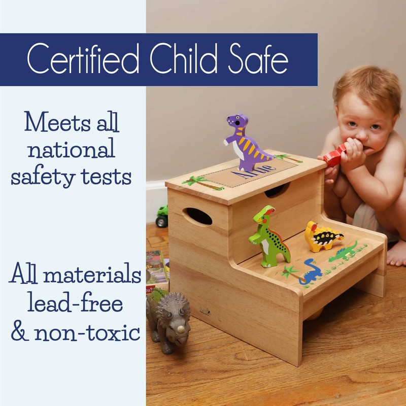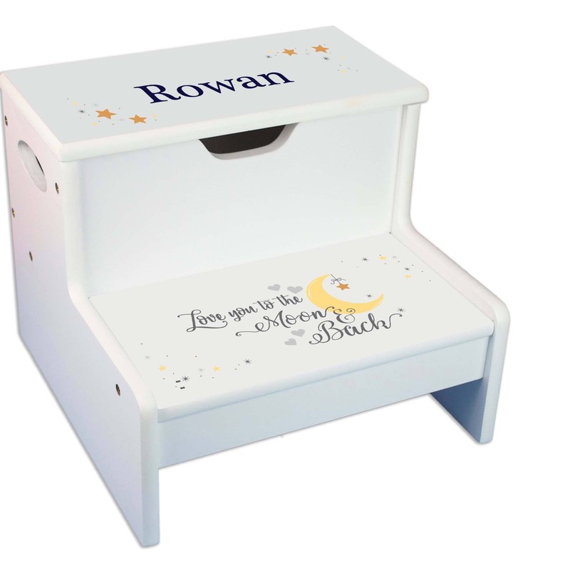 - đ€SIT! STEP! STORE! - Decorative & Functional - This personalized keepsake is very useful. Two steps allows kids to reach higher places - kitchen counters, light switches and more. The top lid lifts to reveal a space for toys. Perfect accent to any room.