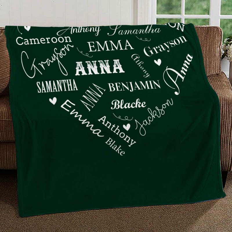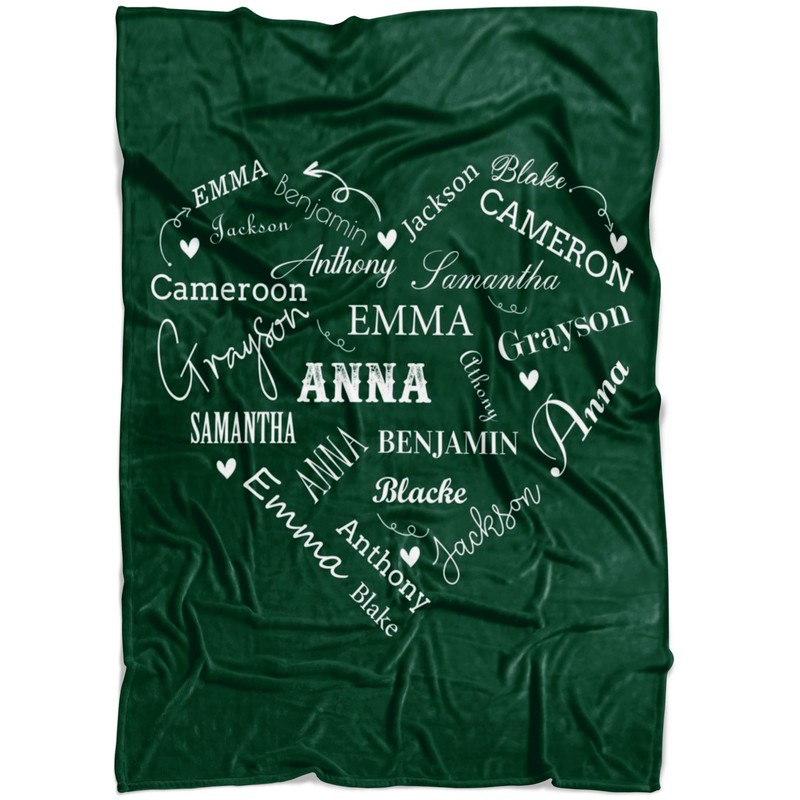 Personalized Name Blankets for Baby, Kids and Adults, Mom, Grandma. Custom Name Blanket from Your Names. Close to Heart Customized Throw. Gift for Mothers Day, Christmas (Green, Fleece 50" x 60")
