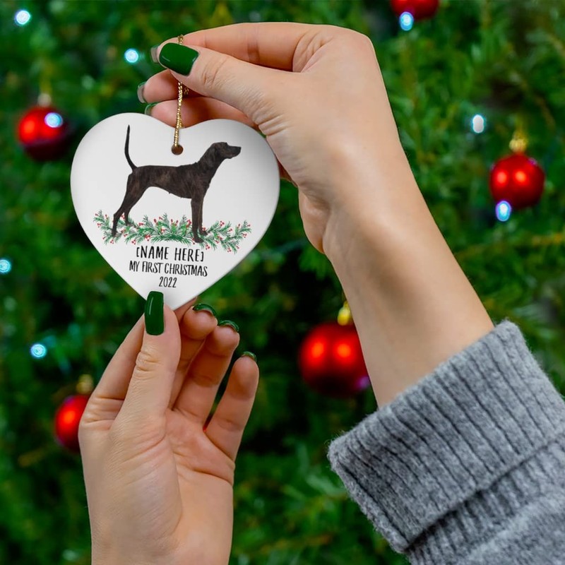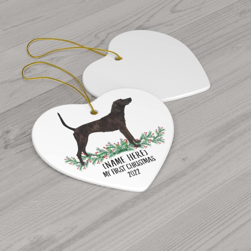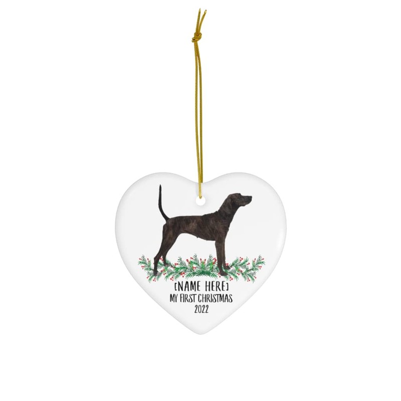 Personalized Name Custom Year Plott Hound Black Brindle New Years 2025 Decorations Gifts First 2024 Christmas Tree Ornaments Ceramic Heart
